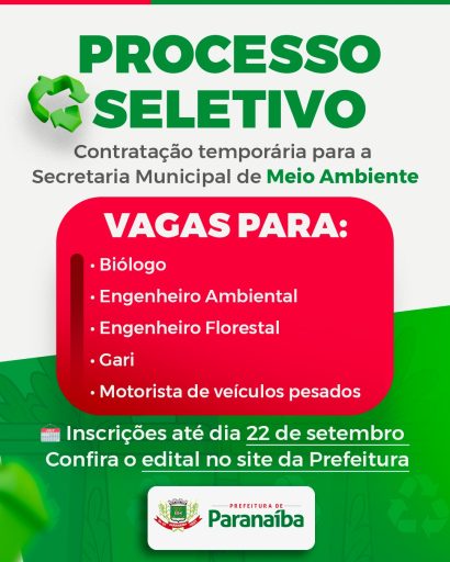 Processo Seletivo Simplificado para a Contratação Temporária de Profissionais para a Secretaria Municipal de Meio Ambiente