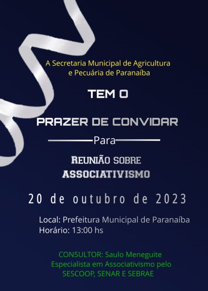 Na tarde de hoje (20), a Secretaria Municipal de Agricultura e Pecuária em parceria com o Sebrae/MS, por meio do programa Cidade Empreendedora, realizará uma Reunião sobre Associativismo, com o consultor Saulo Meneguite, especialista em Associativismo pelo SESCOOP, SENAR e SEBRAE.