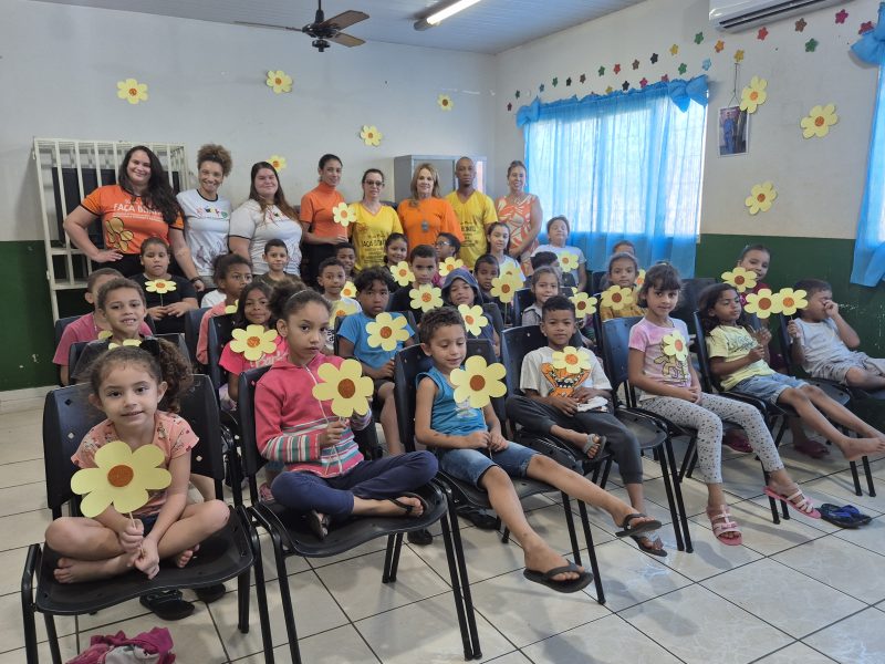 Em ambos os turnos, as crianças participaram de um bate-papo informativo e acolhedor, aprendendo sobre proteção, respeito e o direito de viverem livres de violência.