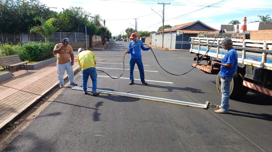 As ruas localizadas ao redor da Praça “Armante Ferreira Chaves”, conhecida popularmente como “Praça da Escola Gustavo”, receberam nova sinalização horizontal.